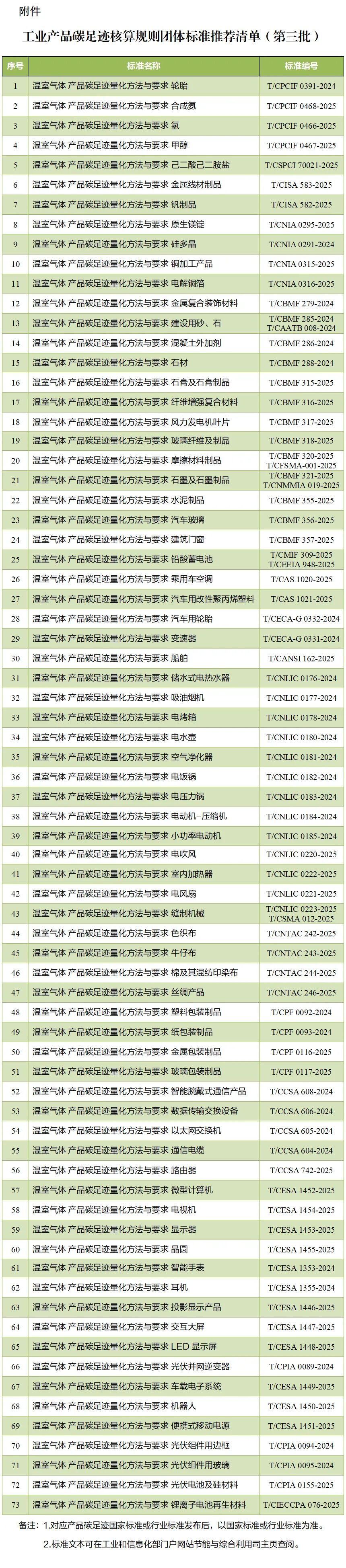 附件:工業(yè)產(chǎn)品碳足跡核算規(guī)則團(tuán)體標(biāo)準(zhǔn)推薦清單(第三批)