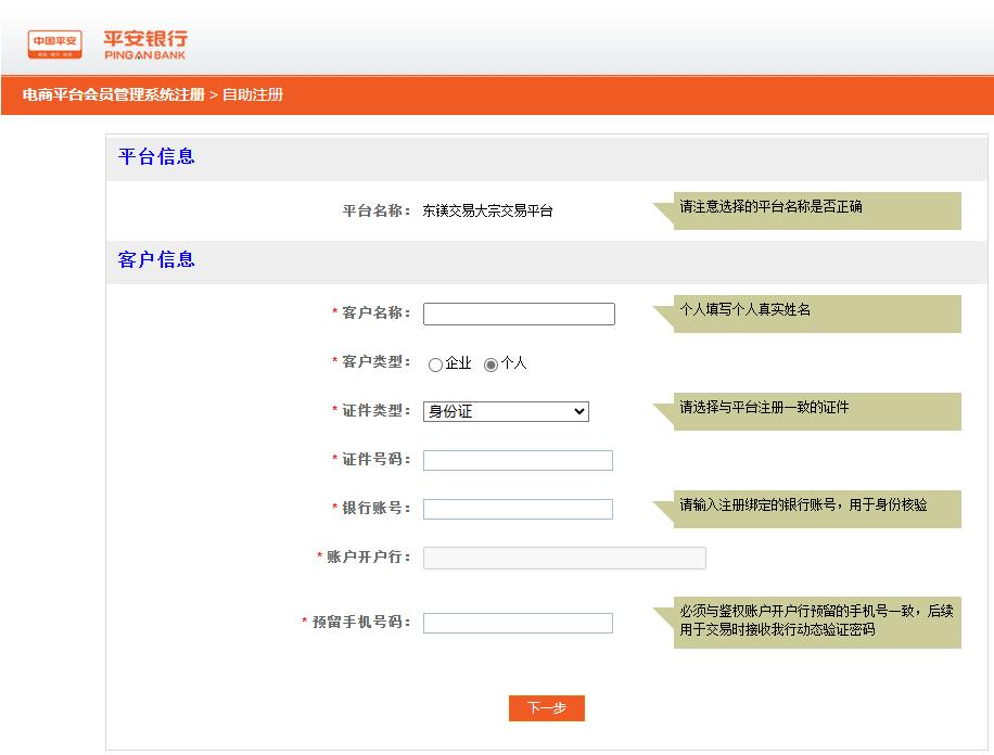 2.打開平安銀行自助注冊首頁: