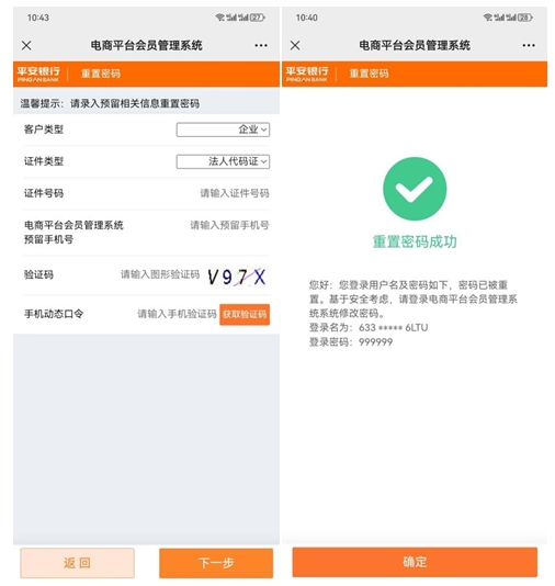 (銀行系統(tǒng):用戶名、密碼不可見,需要重置后,才能登陸)